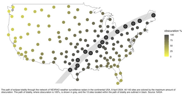 Follow the celestially-driven, aeroecological events of today’s total solar eclipse as detected by the weather surveillance radar network operating in the contiguous US!
