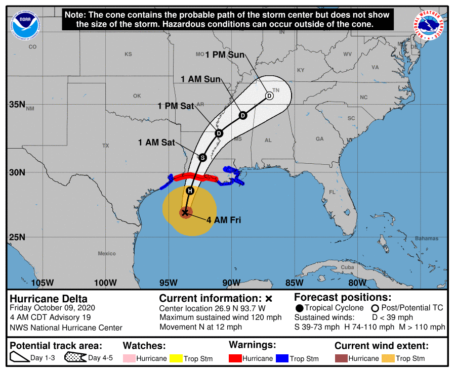 Hurricane Delta is a powerful storm predicted to make landfall late on Friday on the Louisiana coast. This storm will certainly entrain Gulf of Mexico seabirds, as well as displacing some nearer shore species inland. But as always with our posts about birding near tropical weather systems, remember that these storms are extremely dangerous: safety is always the top priority.