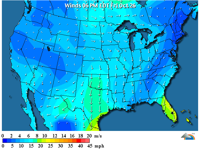 Let’s also consider the surface winds on take off that birds departing from Florida might encounter.