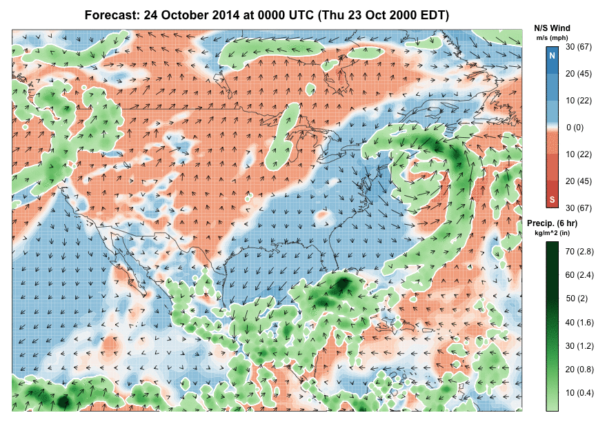 October 24, 2014Regional Migration Forecast: 24-31 October 2014Moderate to heavy movements occur in several pulses this week, though primarily at more local than regional scales, as storm systems exit the Northeast over the weekend and pass through the Great Plains and Upper Midwest over the course of…