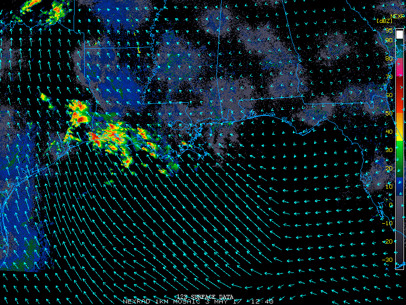 May 3, 2017Regional Migration Update, Gulf Coast and Southeast: 3 May 2017Team BirdCast is highlighting an area where fallouts and concentrations may occur over the course of the day. An areas of significant storms and precipitation is moving slowly north and east over the western Gulf Coast, impacting Louisiana and nearshore off the immediate coast.
