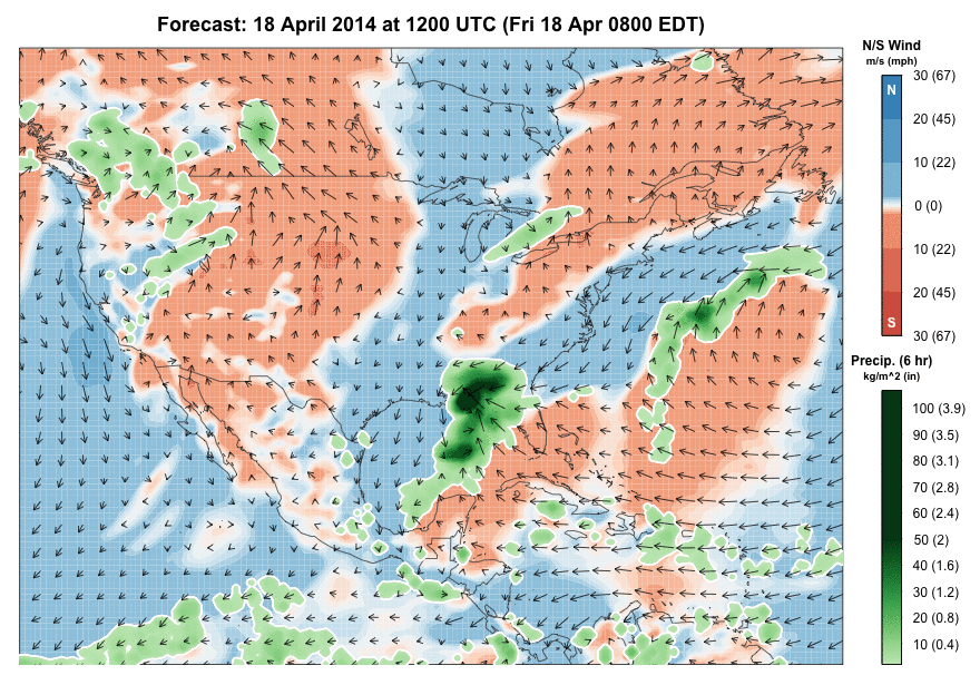 April 18, 2014Regional Migration Forecast: 18-25 April 2014Pulses of movements will track the advance of several low pressure systems across the continent this week, with those system producing light to moderate movements in the West and moderate to heavy movements in the East. Species on the move…