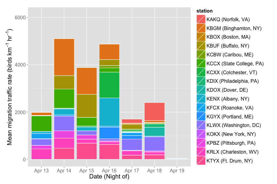April 22, 2016Traffic Report, Northeastern US: 13-20 April 2016Welcome to this installment of BirdCast Traffic Reports, posts describing northeastern US nocturnal bird migration traffic rates, as calculated from a completely automated pipeline of algorithms. The images you see in Traffic Reports present the migration traffic rate (MTR), direction of bird movement, and…