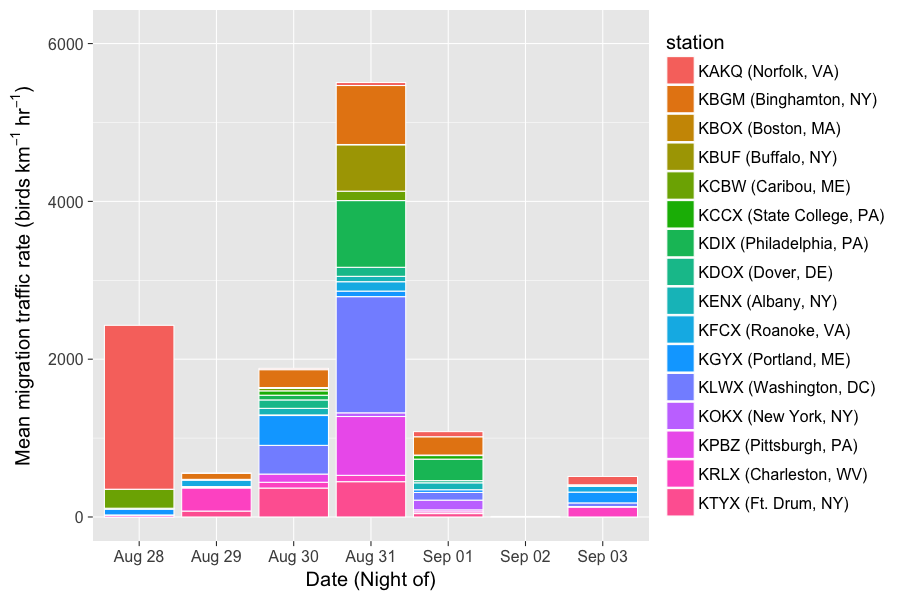 September 25, 2015Traffic Report: Northeastern US, 3-23 September 2015Team BirdCast is excited to debut daily reports of migration traffic rates in the northeast United States. Each night, from local sunset to local sunrise in the Eastern time zone, a BirdCast server downloads radar data from 16 stations in the northeastern US….