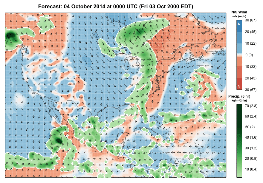 October 4, 2014Regional Migration Forecast: 3-10 October 2014Favorable conditions for light to moderate movements are pervasive in the West, while major movements in the East occur primarily over the weekend. Species on the move this week will include Brant, American Wigeon, Ring-necked Duck, Yellow-bellied Sapsucker, Hermit Thrush, Golden-crowned Kinglet,…