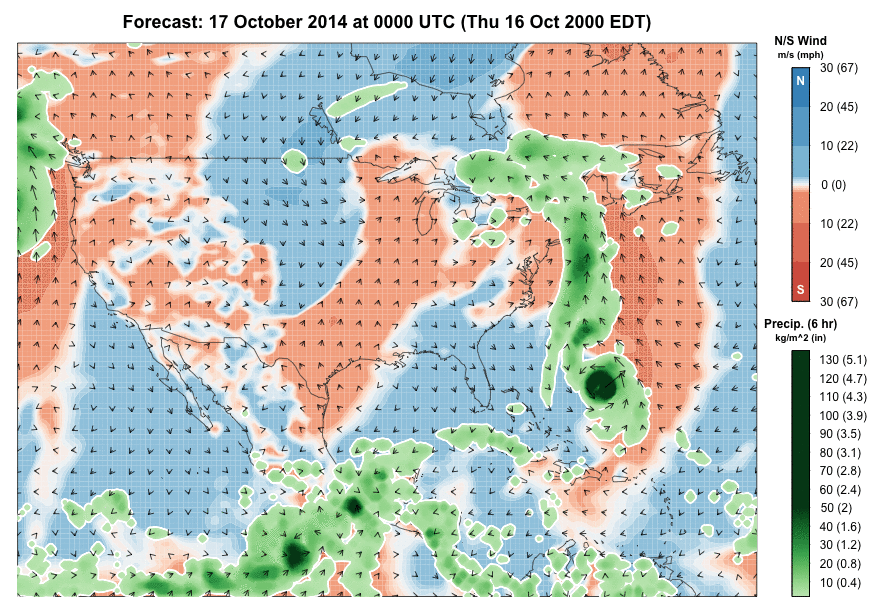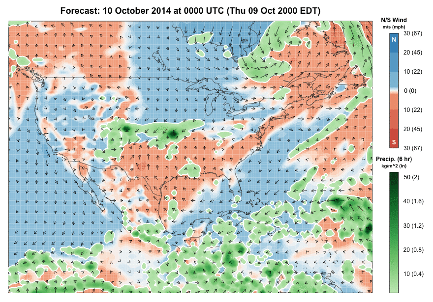 October 10, 2014Regional Migration Forecast: 10-17 October 2014Light to moderate movements occur early in the forecast period across the West before unfavorable conditions arrive for the remainder of the week, while two pulses of moderate to heavy movements follow passing frontal boundaries in the East. Species on the…