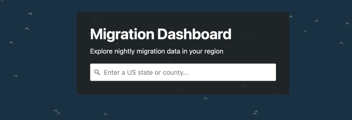 April 19, 2022BirdCast welcomes a new era in Spring 2022: the Migration Dashboard!The new BirdCast Migration Dashboard is here, providing nocturnal bird migration data for counties and states in the contiguous US! This tool offers new capabilities to investigate birds’ movements in detail and at scales that complement our existing national forecast and live migration maps. Try it out today to explore patterns of nocturnal bird migration in your area!