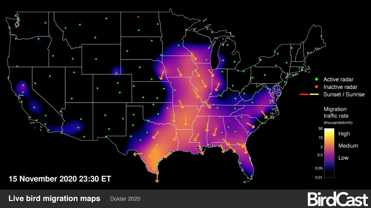 November 16, 2020Another BirdCast season in the books (with a few more pages to be added)With dawn’s arrival today Team BirdCast officially closed the books on another migration season of forecasting where, when, and how many birds will migrate over the contiguous US. Team BirdCast thanks all of you who spent time perusing our forecasts, pondering our interpretations, and (hopefully) ground-truthing our speculations!