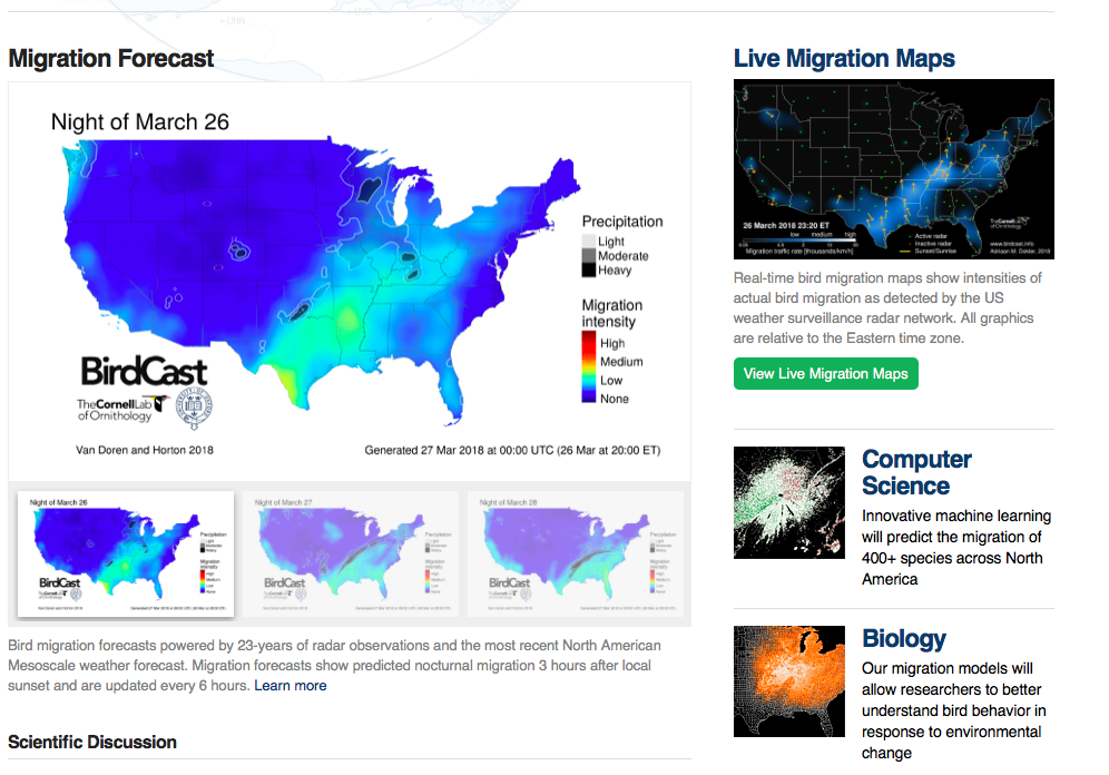 April 4, 2018A Primer for New Migration Forecast Tools From BirdCastWould you like more information on ways to use and to understand new BirdCast migration monitoring tools for spring 2018? Read on!