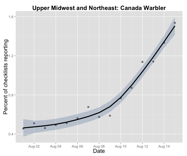 The Upper Midwest/Northeast region is about to see an influx of Canada Warblers and many other boreal migrants. eBird data from 2004-2013.
