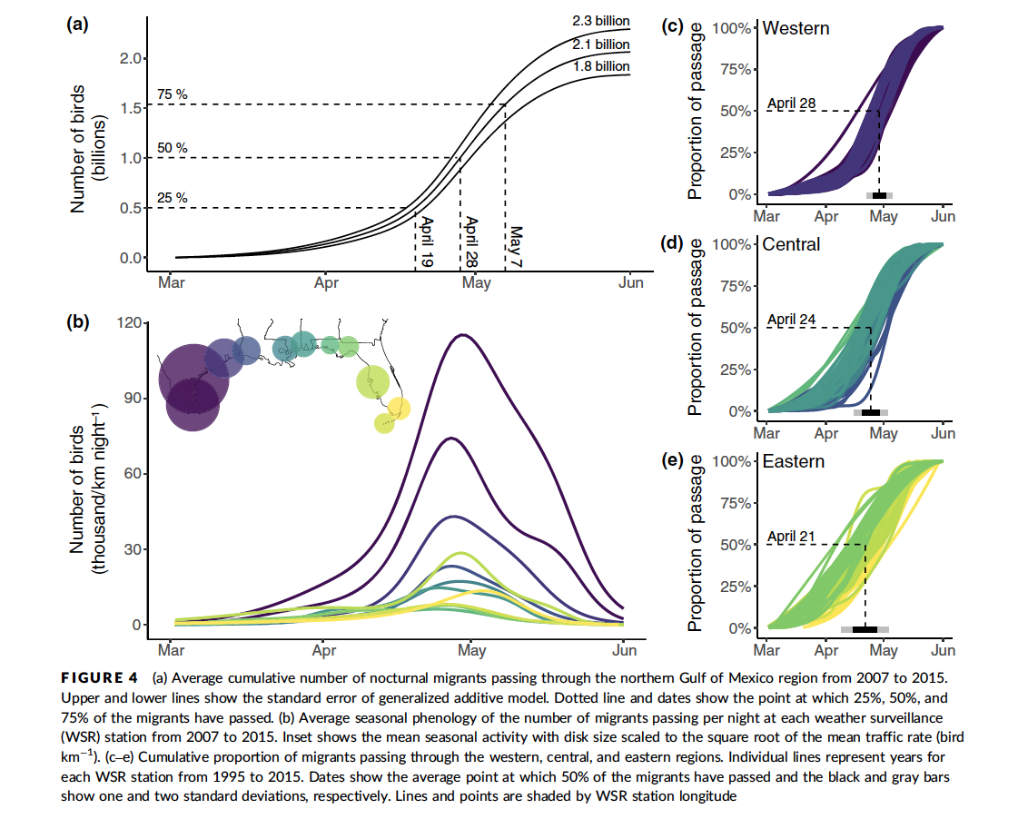 To put these movements in perspective, let’s revisit a figure from a recent publication (Figure 4, from Horton et al. 2019 published in the journal Global Change Biology) highlighting the enormous movements (billions!) of birds still to come through Florida and the Gulf of Mexico region in the next three months!