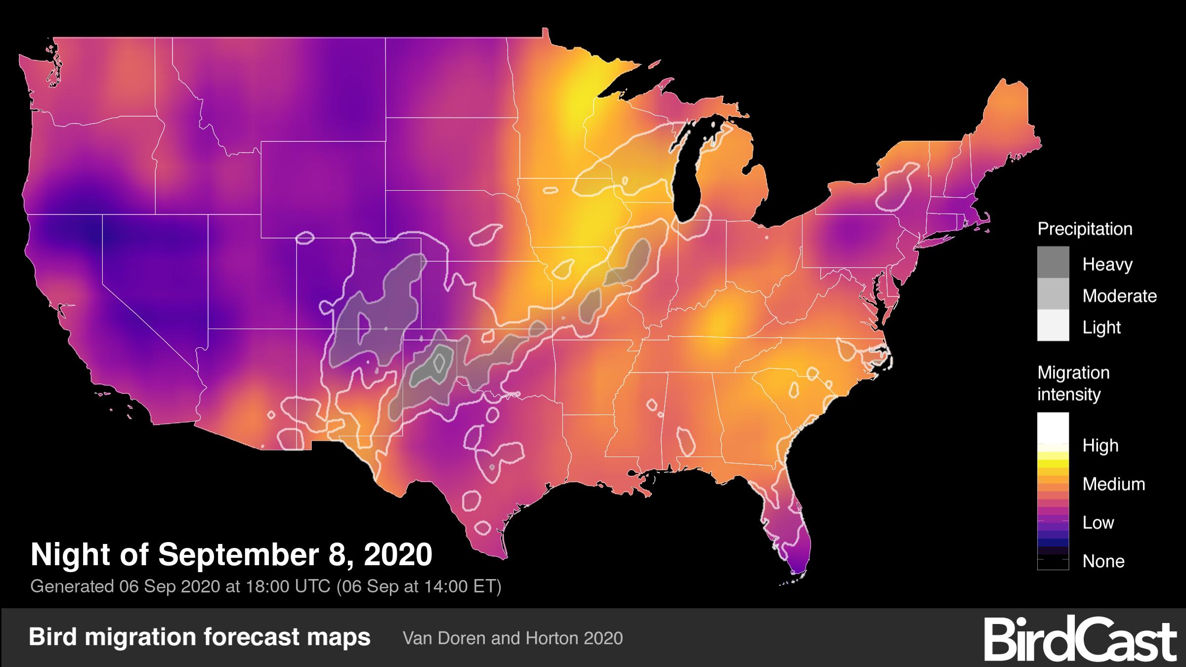 Note as well in both of these bird migration forecast maps that conditions will be present for concentrations in the southeastern US, especially Florida where another frontal boundary will be stationed between Monday and Tuesday.