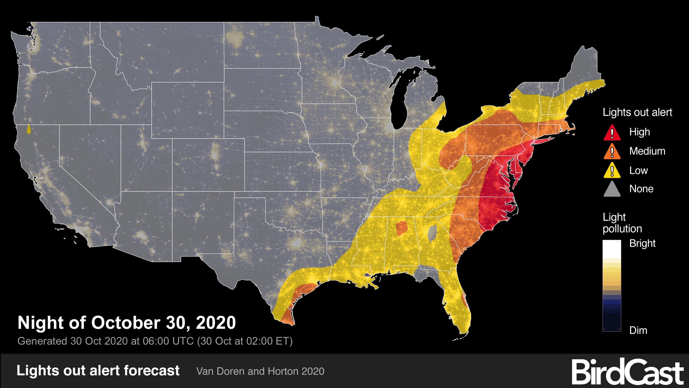 The BirdCast model is predicting 100 million + bird migration each night this weekend in the eastern and central US!