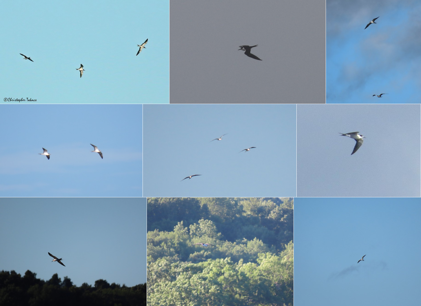 As Isaias moved north, Sooty Terns were observed in many areas: for example, in Massachusetts, Rhode Island, Connecticut, New York, New Jersey and Virginia. In morning of 4 August, terns were being reported in Virginia (e.g. Chesapeake Bay), by late morning in coastal New Jersey and early afternoon in metropolitan New York. By mid afternoon birds appeared in Connecticut, and as the storm center tracked into upstate New York, 50 miles west of the Connecticut and Massachusetts borders, Sooty Terns were dropping into freshwater bodies, especially after precipitation cleared late in the afternoon and early in the evening. What follows is an accounting of observations from a number of astute observers (coordinated by Ned Brinkley, Doug Gochfeld, and Sean Williams among others, thank you!) and the times of these observations on 4 August (note, there are other observations that do not have specific times of Sooty Tern sightings):